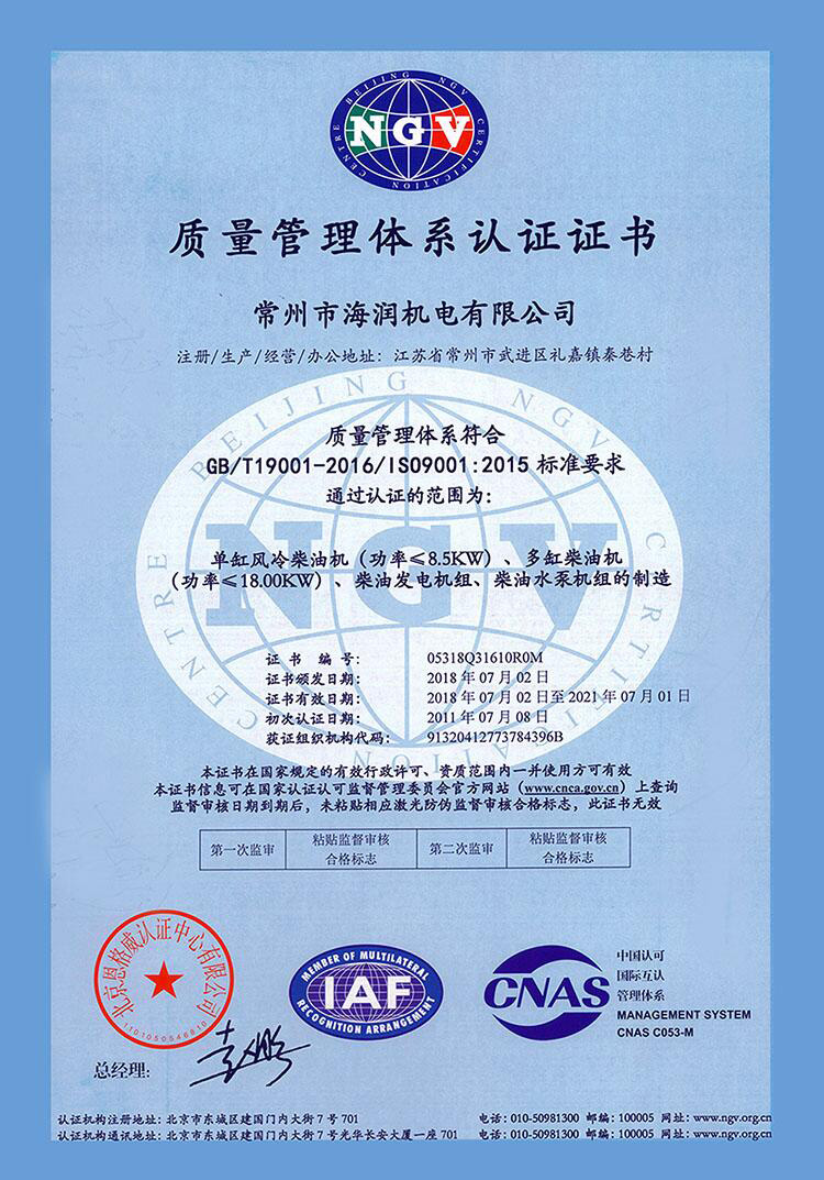 公司主營業務包括:水冷柴油發電機組、風冷柴油發電機組、風冷柴油機、汽油機、汽油機組、水泵機組、小型農用機械和道路機械設備。公司研發了具有自主產權的198FA風冷柴油機已獲得發明和實用證書,公司生產的超靜音柴油發電機組獲得發明證書。此外,公司還通過了ISO9001-2015質量管理體系認證,獲得歐盟的CE安全認證,產品暢銷國內和國際市場。